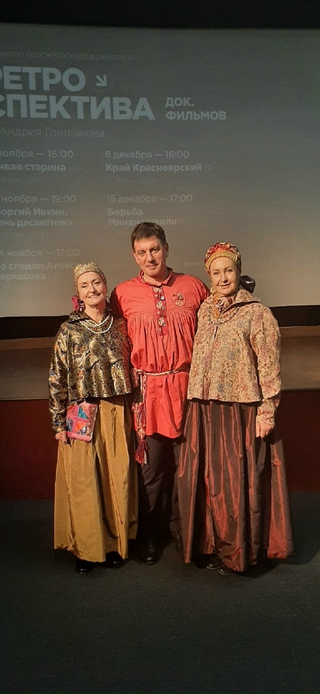 11 ноября в Доме кино прошёл творческий вечер журналиста, телеведущего и кинорежиссера Андрея Гришакова, приуроченный к его 50-летнему юбилею. Показы документальных фильмов проходили в ноябре и декабре в Доме кино. Первый фильм посвящен нашему фольклорному коллективу «Живая старина» — единственному ансамблю, изучающему и сохраняющему традиции ангарской народной песни.